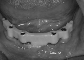 Zirkonsteg auf 4 Implantaten im Unterkiefer