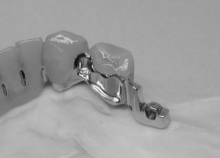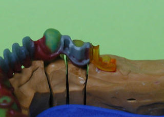 mit Kunststoffzähnen verblendet. Mit Hilfe eines