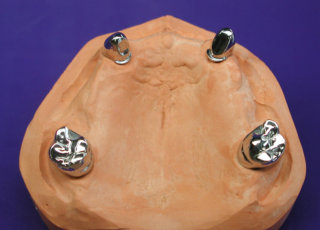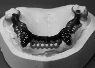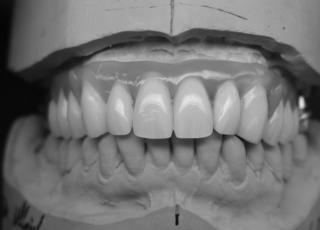 Matallgerüstes erfolgt die Aufstellung der Zähne